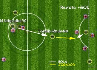 Fazer com que os passes passem pelos volantes garante uma saída melhor, pois dessa forma os MOs recebem a bola mais próximos dos atacantes: Posicionamento: